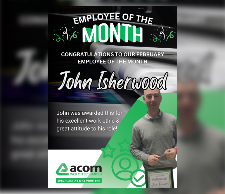 Thank you and well done to John Isherwood, February's employee of the month!